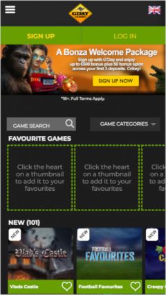 In-terms of looks; G'Day Casino features an Australian outback theme with a splash of green and yellow completing the effect. Navigation is very intuitive, and the casino plays very well on smartphones and tablets so you can take the casino action anywhere with you.