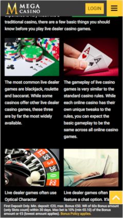 In-terms of looks; Mega Casino features a classic slots theme with a splash of gold completing the effect. Navigation is very intuitive, and the casino plays very well on smartphones and tablets so you can take the casino action anywhere with you.
