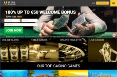 New players are treated well at Mega Casino with a great welcome bonus of 100% deposit match up to £50 plus 25 Free Spins (Full terms available through the links on this page). Players are looked after by the casino support team, who are available via email.